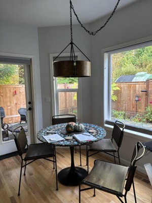 This light adds a high-end look to the kitchen dining area. High quality fixture that looks even better than expected.