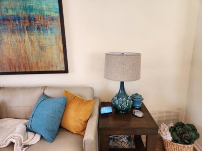 This lamp is truly a work of art. You must repeat a color in a room a few times to add style and flair and these lamps took our livingroom to the next level. Perfect for someone who lives ceramic art, blue/green/teal decor.