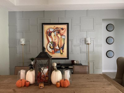 This lamp looks great in my living room with the golden framed mirror I have. It was super easy to put together. I like the dimmer option