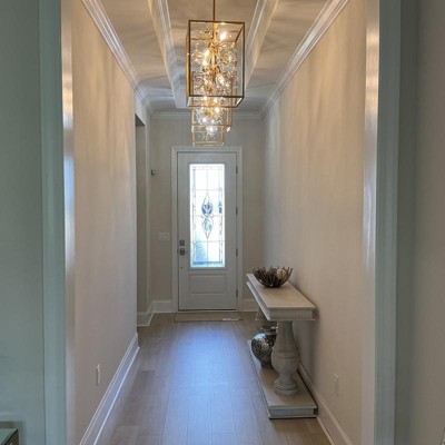 Stunning foyer light. I decorated my foyer with a Polynesian theme and used this fixture because it reminded me of coral. It also looks like a tree. It’s a versatile light that blends in with your decor. Love it! Purchase clear glass, soft white candelabra lights for a better fit. Regulär sized candelabra lights are too long and wide. Be sure to remove the white frame screwed into the bottom of the light. It’s there for packaging only. A handy person can install this light without a professional.