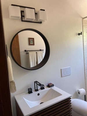Beautiful bathroom vanity lighting! Contemporary style puts out plenty of light. Compliments grey & black bathroom perfectly!