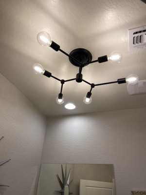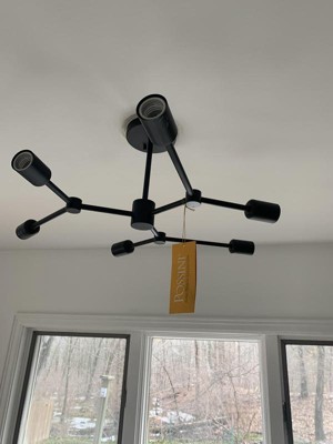 Possini Euro Design Marco Industrial Ceiling Light Semi Flush Mount Fixture 26" Wide Black 6-Light Branching for Bedroom Kitchen Living Room Hallway