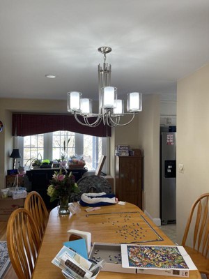 This light looks beautiful in our dining room. It appears to be well-made and looks very elegant. Like other reviewers mentioned, it's a little tricky installing. We hired a professional electrician, which was well worth it. I would recommend this to anyone looking for a chandelier, especially with brush nickel.