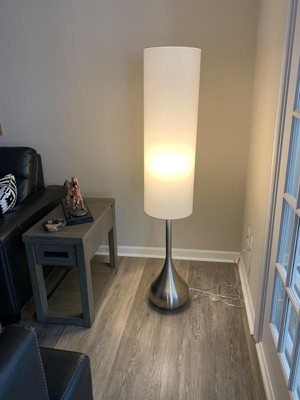 Possini Euro Design Mid Century Modern Floor Lamp 62" Tall Brushed Steel Droplet Cotton Cylinder Shade for Living Room Bedroom Office