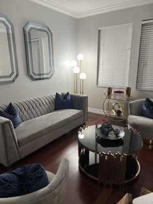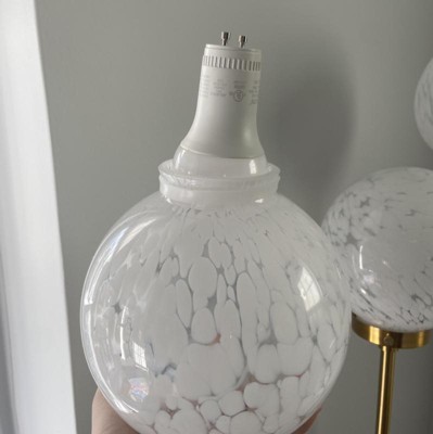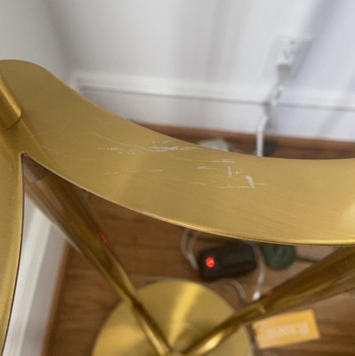 Light fixture came with a large scratch on the gold base. I was willing to accept this since it’s a hassle to return. However, after assembling the rest of the lamp, the last globe didn’t even fit over the provided light bulbs because the opening was too small. Who even made this?!
