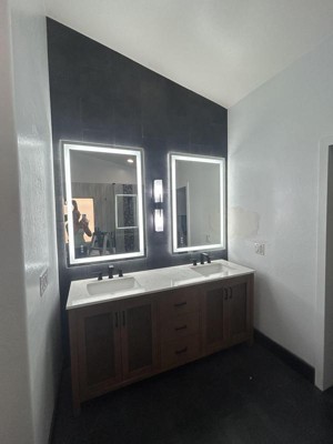 This light was perfect to complete the contemporary look we were going for in our bath remodel. We installed it horizontally over our 24" x 30" vertically hung mirror. We have three 15" wide cabinet towers that flank the two sinks, and we were a little concerned about having room to replace the light bulb. However, the light bulb we ordered is short enough that it won't be a problem to remove the glass cover to get at the bulb. Highly recommend this light fixture. You won't be disappointed.