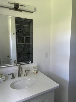 We remodel the bathroom and used those Satin nickel bath lights. Looks like a million dollar bathroom.