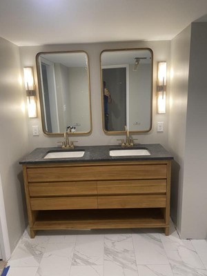 Look beautiful. Ample soft light. Gave a slight face-lift to the vanity are of this ole house. Thanks for your help and patience in my making a back-n-forth choice.