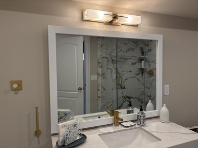 I placed this fixture in my half bath. It adds function and decor without being over powering. It goes perfect with my gold faucets and hardware.