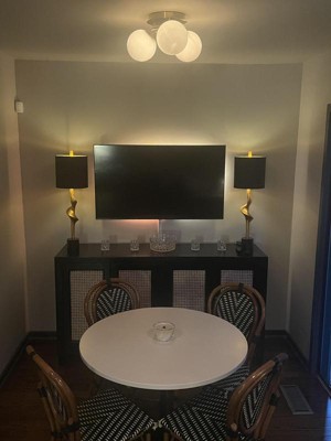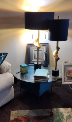 Elegant and unique. I placed this on an entry cabinet and have received numerous compliments on the style, material combinations and uniqueness of the lamp. I takes up little space so perfect as an accent piece or for a small table.
