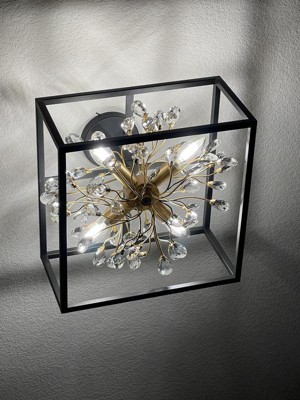 Possini Euro Design Modern Ceiling Light Semi Flush Mount Fixture 14 1/4" Wide Black Gold 14 1/4" Wide 4-Light Crystal for Bedroom