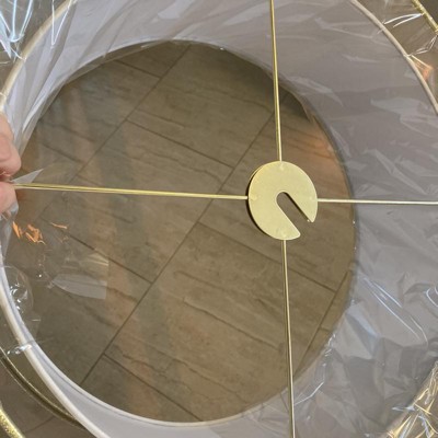 I love my new light. It is a modern redo of what I had before. It also goes real well with the drum light that is also from Lamps Plus that is over my dining table. When not on the shade has a gold sheen but when the light is on it looks white and I love it that way.
