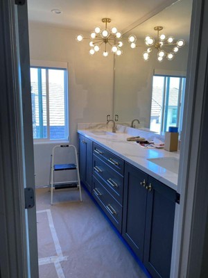 Absolutely spectacular! The warm glow gives our guest bath a luxurious feel. We truly love it. We purchased the brass finish.