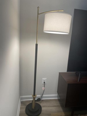 Possini Euro Design Modern Downbridge Floor Lamp 64" Tall Black Brass Metal Linen Drum Shade for Living Room Reading Bedroom Home