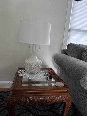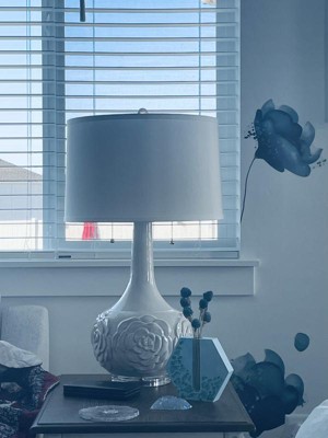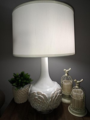 Possini Euro Design Natalia Modern Country Cottage Table Lamp 27" Tall White Ceramic Glaze Textured Floral Drum Shade for Bedroom Living Room Bedside