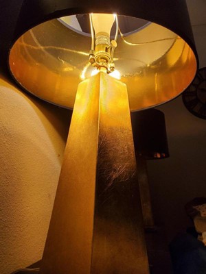This lamp was exactly as pictured and the description was perfect. It arrived safely packed and very punctual!! It’s the perfect decor for my living room giving me an updated look. The black/gold lampshade is exquisite!! I have ordered light fixtures from Lampsplus before and always extremely pleased!!
