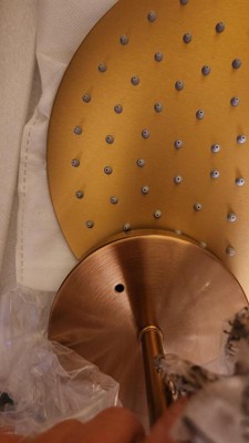 Color description is incorrect. I would call it brushed brass, not brushed gold as it has a lot of red tones in it compared to a typical yellow-gold color presented in the photos. It also does not match the gold compared to other Possini-branded lighting I purchased from lamps Plus. I attached a photo of the sconce resting up against a typical brushed gold shower head.