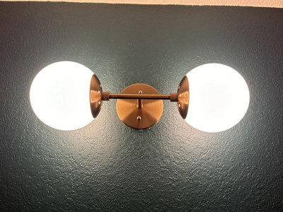 Possini Euro Design Oso Modern Wall Light Sconce Soft Gold Hardwire 6" 2-Light Fixture Opal Glass Orb Shade for Bedroom Bathroom Living Room House