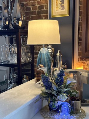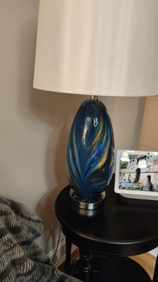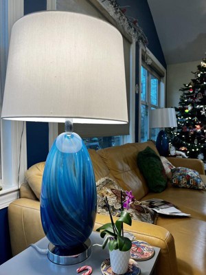 we just repainted our family room and wanted to have a beach vibe. These gorgeous table lamps offer just that. The glass work is beautiful on the base.