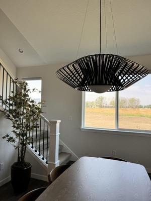 This stunning light fixture is a beautiful addition to any dining room, offering a modern touch and adjustable ambiance with its dimmer switch. While installation can be a bit challenging, many guests appreciate its unique design and quality. The chandelier is well-made and heavy, often requiring two people for installation. Guests love its eye-catching appearance and the ability to customize its height, making it a versatile choice for various spaces.