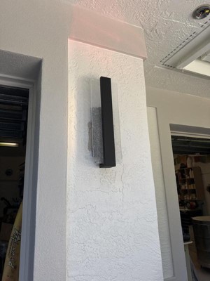 Possini Euro Design Cascadia 18" High Modern Outdoor Wall Light Fixture Mount Porch House LED Bulb Weatherproof Black Metal Piastra Glass Shade