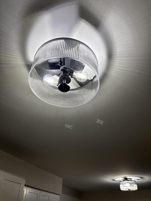 Possini Euro Design McKenzie 14" Modern 2-Light Semi Flush-Mount Ceiling Light Fixture Kitchen Foyer Hallway Drum Round Black Finish Ribbed Glass