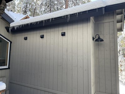 Very subtle fixture. Placed it on the back side of the garage near the outside door to the garage. Just enough light to be practical and not shining toward the neighbors house.