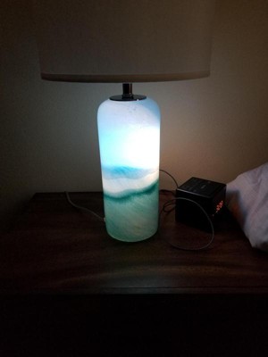 I love this lamp. The three different lighting options from the night light to regular lamp to both together make it very flexible and the colors are beautiful...like a wave on the ocean.