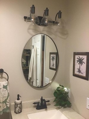 Perfect fit for our small dark bathroom. Gives off lots of light and makes the room feel bigger!
