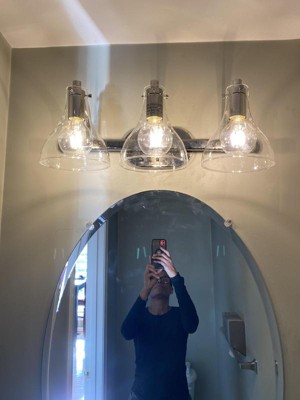 This light fixture works really well in our guest bathroom. I am really pleased with this purchase and it was on sale!