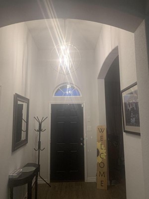 This chandelier looks beautiful in my foyer. It brings a lot of light to my foyer. Looks great from the outside looking through the foyer window. It was easy to assemble and install