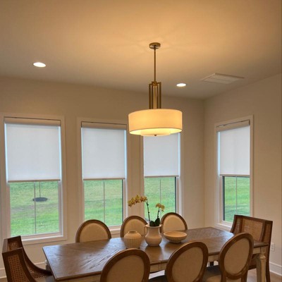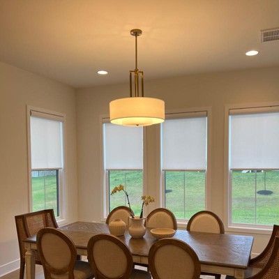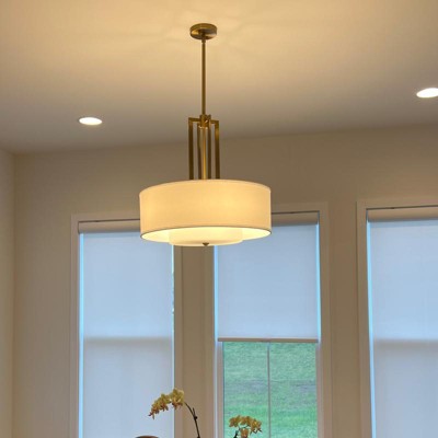 So beautiful! This chandelier looks super expensive with its clean lines and brass finish. Love it in our dining room!
