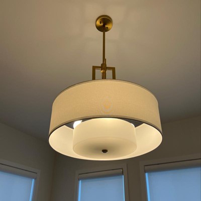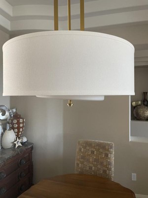 Possini Euro Design Sundry Warm Brass Pendant Chandelier 24" Wide Modern Double Drum Shades 4-Light Fixture for Dining Room House Foyer Kitchen Island
