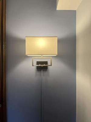 Possini Euro Design Trixie Modern Wall Lamps Set of 2 Brushed Nickel Plug-in 12" Light Fixture Rectangular Fabric Shade for Bedroom Living Room Home