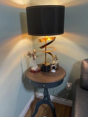 I loved this lamp on paper. Bought it on line, set it up and from there, it went downhill. The "helix" style looks "odd" like you want to make it more "spiral." The light even with a 150 watt bulb is no brighter than a candle..possible a design factor with a black shade. I will likely return this lamp. And that will be a sad thing because the size, the color, and the style was JUST what I wanted..but it doesn't work.