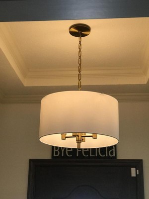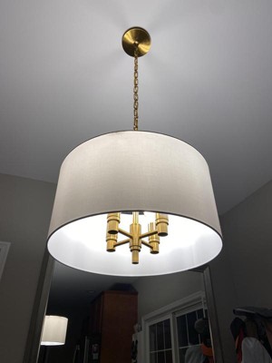 Possini Euro Design Warm Gold Pendant Chandelier 20" Wide Modern White Linen Drum Shade 4-Light Fixture for Dining Room Foyer Kitchen Island Entryway