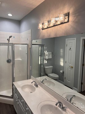 Gorgeous beautiful lighting. This made the bathroom sparkle ??.