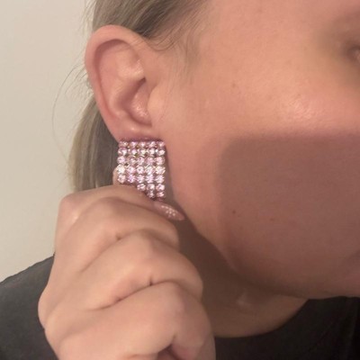 Jazz up your everyday outfits with these 5-Row Post Earrings from A New Day™. These earrings features shiny crystals beautifully arranged in a 5-row design on a metal base for a glam touch. Designed with postback closures for a snug fit, these hypoallergenic earrings suit most skin types.