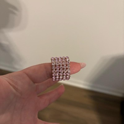 [This review was collected as part of a promotion.] The light pink color and repetitive gem pattern is a true statement piece. They came in the mail quickly but I was surprised of the size of each earring. It really is more than half the size of my ear and a little heavy to comfortably wear all day. But I think would be nice to add to a nice evening outfit to get dressed up. It comes with two backings which is nice