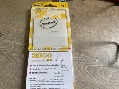 [This review was collected as part of a promotion.] I received the transparent post-it to review I received it for free. I used it on a sandpaper that I needed to use to complete a job I was working on. To mark which type of paper was right for me to use to finish.