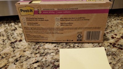 Post-it 100% Recycled Paper Super Sticky Notes are made from 100% recycled paper and feature two times the sticking power to make sure your message stays put. Succeed in your everyday tasks and feel good knowing these notes are made in a zero-waste-to-landfill plant. Post-it Notes Super Sticky 100% Recycled Paper Super Sticky Notes, 3" x 3", Canary Yellow, 70 Sheets/Pad.