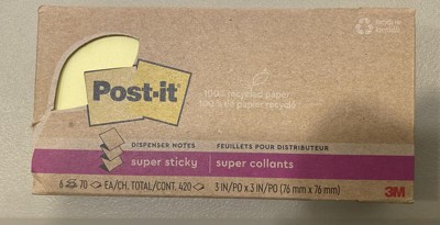 Post-it Notes Super Sticky 100% Recycled Paper Super Sticky Notes, 3" x 3", Canary Yellow, 70 Sheets/Pad, 6 Pads/Pack