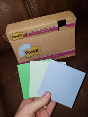 [This review was collected as part of a promotion.] I absolutely love Post-It sticky notes. I have been a fan of them for many years. I was really thrilled when I saw that they have 100% recycled paper packaging as well. I am all about helping save the environment, so I'm so glad they now have packaging that can be recycled. They also came in such gorgeous colors too. I love blues and greens, so I was hoping for them to look great, and they do. Of course they stick very well too. I use these sticky notes a lot to set reminders for myself, so it's a must to be able to have these. They stick and stay up for a long amount of time too, so I don't have to worry about them falling off. Overall these are a wonderful product. I'll continue to keep buying them as I love them a lot.