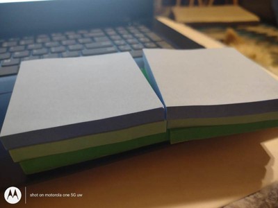 [This review was collected as part of a promotion.] Who doesn't love post it notes! I use these at work for literally everything. These came in blue and green. The size is nice so I can make small notes as I need to. Since I work in a office these have come in handy.they stick real nicely to my desk as well.