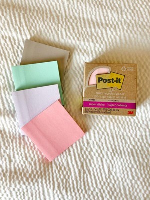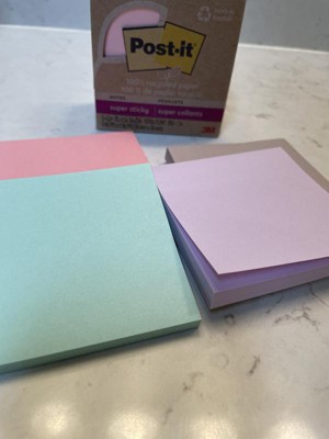 Post-it® 100% Recycled Paper Super Sticky Notes, 3 in. x 3 in., Wanderlust Pastels, 5 Pads/Pack, 70 Sheets/Pad: Multicolored Stationery, Uncoated