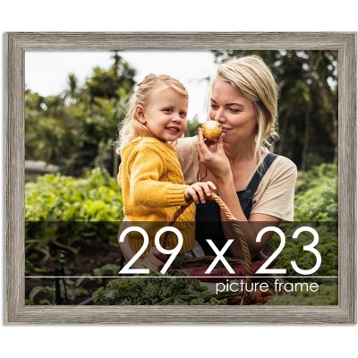 Complete Solid Wood Picture Frame - Barnwood Style - Multiple Color Options AvailableTransform your space with this beautifully crafted, solid wood picture frame designed to showcase a wide variety of treasured items. Whether you're displaying family photos, artwork, documents, chalkboards, puzzles, mementos, or even diplomas, this frame is the perfect fit for all kinds of media measuring 23x29 inches. Available in Brown, White, Grey, and BlackChoose from a range of classic colors to perfectly complement your home or office decor. Whether you're looking for a warm brown, modern white, rustic grey, or sleek black, there's a finish to suit any style. These versatile color options allow you to blend the frame seamlessly into any environment. Premium Construction for Lasting ProtectionThis complete frame comes with a UV-resistant acrylic front that protects your artwork or photos from fading and damage over time. The acid-free foam board backing ensures your items are safe from discoloration or wear, maintaining their original quality for years to come. Ready to Hang - Horizontal or VerticalThis frame is ready to be displayed with pre-installed wall hangers, offering the flexibility to hang it vertically or horizontally. Whether you're framing a portrait, landscape, or other artwork, youll have the freedom to customize the display to suit your space. Made in the USAProudly manufactured in the USA, this premium wood frame is crafted with quality and care to give you a product you can trust. Its a perfect gift for yourself or a loved one, designed to showcase life's most precious moments in a durable and stylish way. Make your memories last by displaying them in this timeless wood frame, available in multiple color options, built to stand the test of time while adding a touch of sophistication to any room.