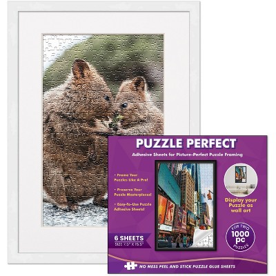 Preserve your precious puzzle masterpieces with our Natural Wood Puzzle Frame Kit . This kit includes everything you need to transform your completed jigsaw puzzles into stunning wall art. The elegant natural wood frame adds a classic touch to any decor, and beautifully complements your puzzle, enhancing its visual appeal. Each kit comes with easy-to-use glue sheets that securely hold your puzzle in place, ensuring it remains intact and ready for display. The backing provides additional stability, while the UV acrylic protects your puzzle from dust, moisture, and harmful UV rays, preserving its vibrant colors for years to come. Our frame kits are available in 20 popular sizes, making it easy to find the perfect fit for your puzzle. Whether you're a casual puzzler or a dedicated puzzle enthusiast, this kit offers a seamless solution for framing your favorite puzzles with professional-quality results. Upgrade your puzzle display with our Jigsaw Puzzle Frame Kit and enjoy the satisfaction of showcasing your completed puzzles as cherished keepsakes. Perfect for gifts or personal use, this frame kit ensures your puzzles are beautifully preserved and ready to be admired by all. Natural Wood Frame for a classic, elegant look Easy-to-use glue sheets for secure puzzle placement Backing provides additional stability UV acrylic protects against dust, moisture, and UV rays Available in 20 popular sizes to fit a variety of puzzlesUSe our Wood Jigsaw Puzzle Frame Kit and transform your puzzle into a stunning piece of art that you'll be proud to display.