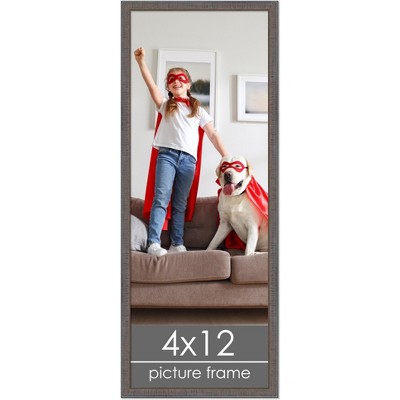 PosterPalooza | 12x4 Thin Barnwood Picture Frame, UV Acrylic, 2 Finishes - Grey and Black