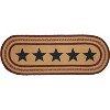 Create a refined, patriotic table for friends and family to gather round and celebrate with deep burgundy, natural tan and navy blue braids and classic texture. The Potomac Jute Stencil Stars Runner includes one table runner made from a premium Jute blend. The rich texture of braided jute is given classic Americana style with a tan base ringed by rows of burgundy stripes and a central star pattern in navy blue. Complete your Fourth of July tabletop decor with other pieces from the Potomac Collection by VHC for primitive country style with Americana charm.