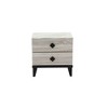 - Designed with two spacious drawers, this nightstand provides ample storage for all your bedside essentials, with each drawer adorned with an elegant diamond shaped knob that adds a touch of sophistication